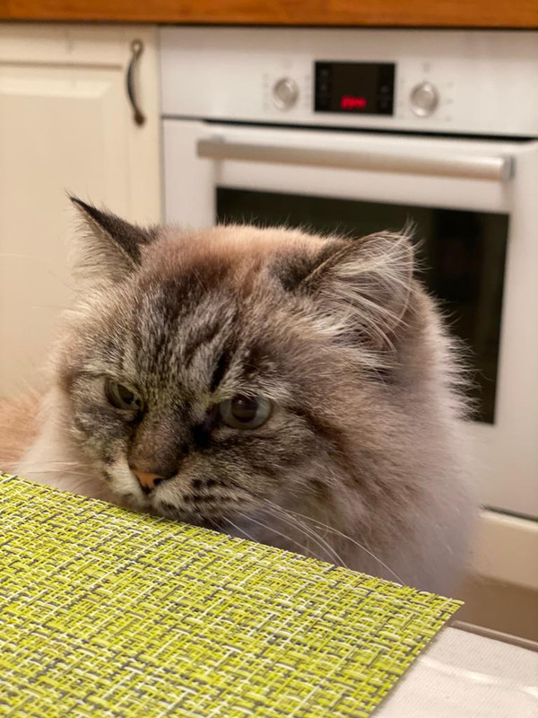 Вот он, хитрющий Паф. Пьёт кокосовое молоко из хозяйской чашки, если отвлекаешься на звонок, ест крекеры, и тырит кукурузные палочки, только не ест, надгрызает выплёвывает, и гоняет лапками, пока не загонит в угол, из которого никто не сможет извлечь и даже он.