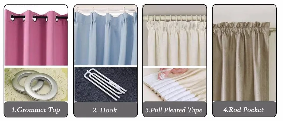 Hooks Top и hook way no hooks - не знаю что это) Полагаю, что это лента с обратной стороны, на которой есть петли для крючков, похоже на pull pleat.Но не поручусь, не уверена)