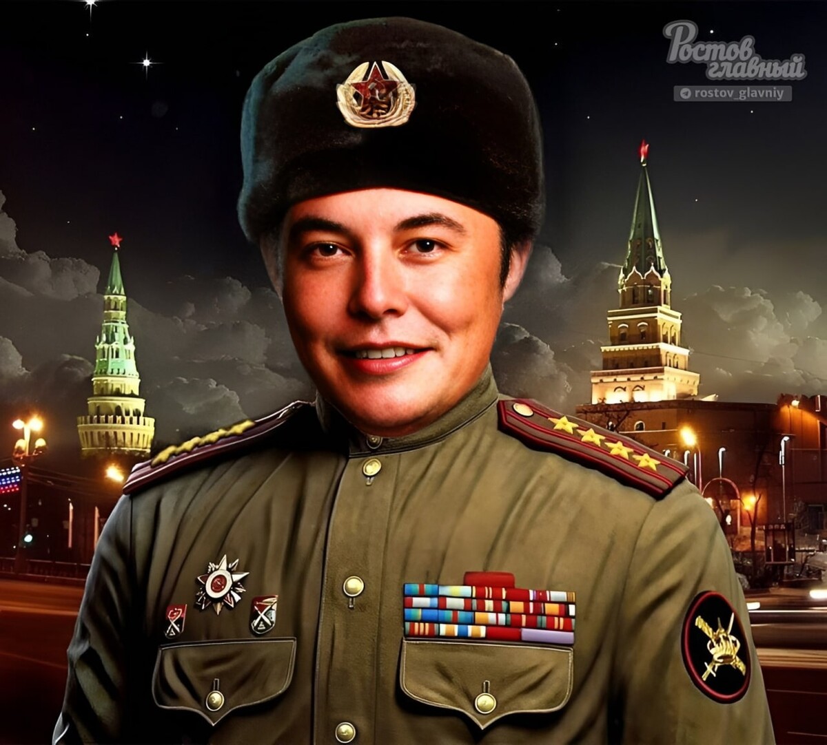 Я думаю, это фотожаба. Маск в образе российского военного.