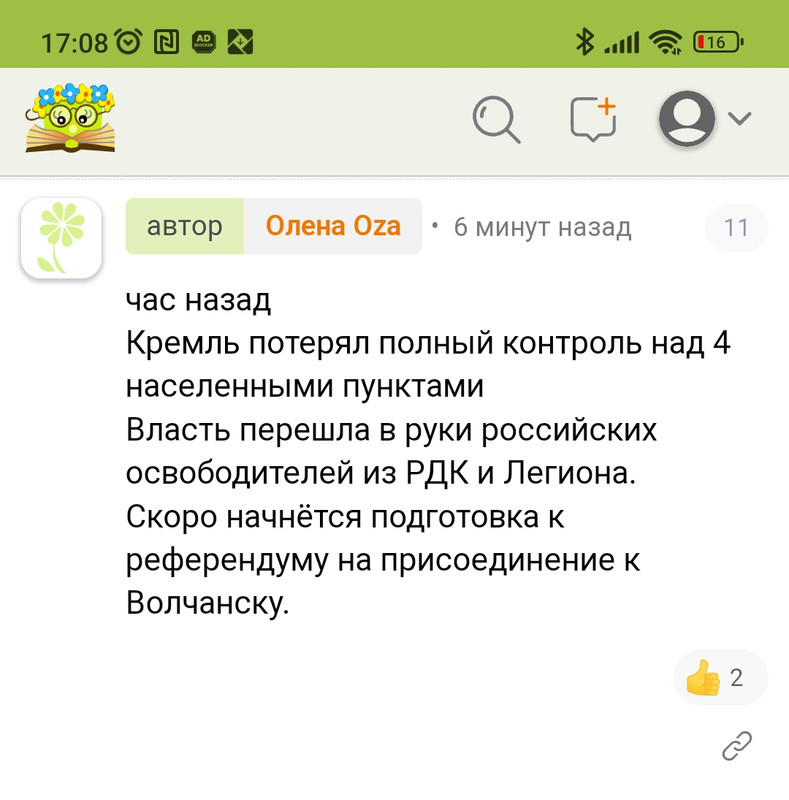 У обитателей КС нет новостей внятных, поэтому испорченный телефон и кукуха едет. Представьте, утром Зе сказал, что готовы к наступу, вечером представитель его офиса сказал, что не готовы, мало поставили. Про взрывы в крупных городах все знают, а писать об этом нельзя, поэтому как бы всё ок, но местные знают, что не ок. И непонятно, во что верить.