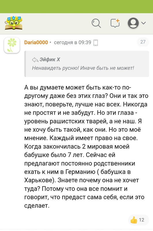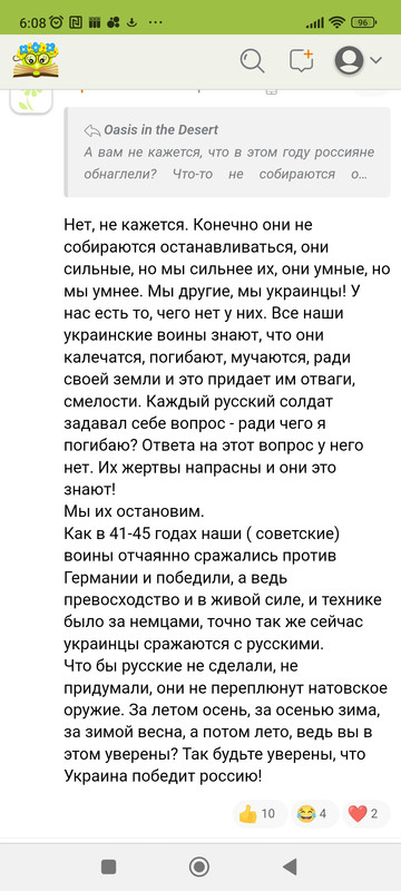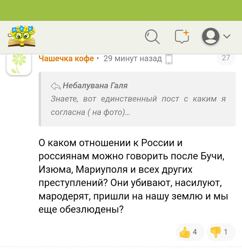 Нормальных людей там мало, но они, все же, есть и даже высказываются! Может быть, когда Зеля наконец перестанет уничтожать Украину и подпишет акт о капитуляции, а эти все люди почитают и посмотрят то, что происходило на самом деле, может быть они смогут стать нормальными? Так бы хотелось бы.