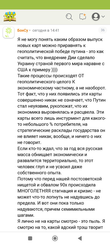 А, то есть вам в Киеве хорошо? Ну так продолжаем. В чем проблема? А мы в России живем обычной жизнью. Мне по фиг , если вас еще лет 10 утюжить будут. Пусть утюжат. Есть о чем на еве поговорить.
