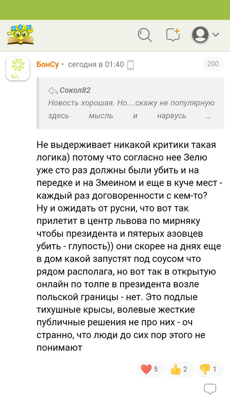 И уже к апрелю в моём окружении не осталось ни одного человека, осуждающего начало сво. У половины из них появился вопрос "Почему так долго тянули и ждали?"