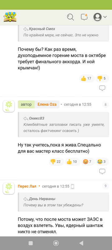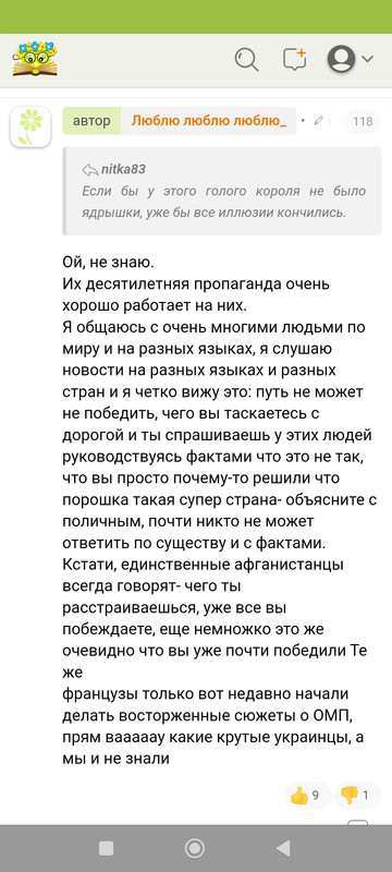 Мне интересно. Я туда не хожу этих придурков читать, но -здесь всегда скрины смотрю, смешно.