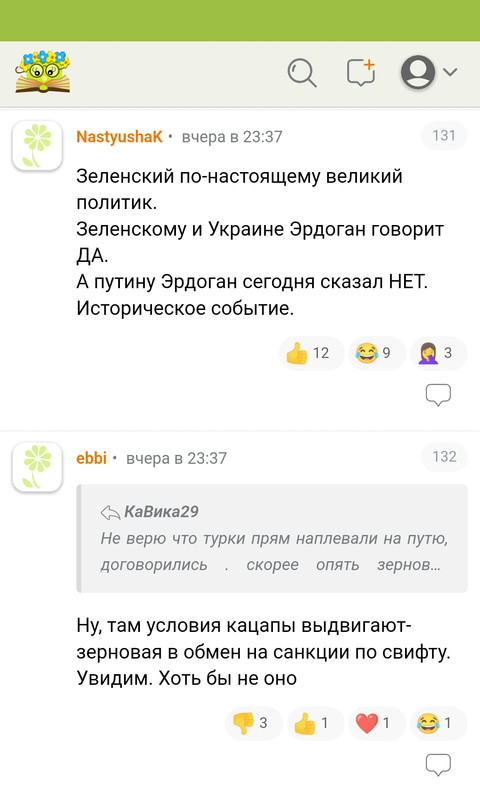 Я так понимаю, что зерновая сделка нужна Европе и Африке (номинально, они ж надеются, что хоть что-то до них доплывёт). А украм она зачем? Нам, уже понятно, вообще незачем.