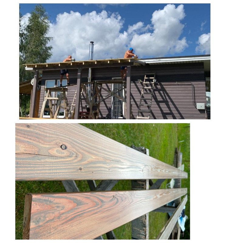 Вот буквально вчера - я доски покрасила, муж с другом террасу делают. Полезное с приятным :-)