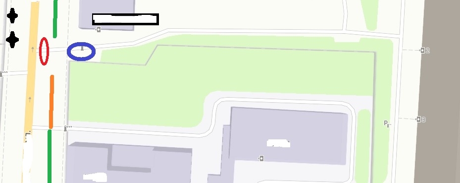 Красный- таксист, синий я, справа слева НЕ жилые здания, жилое далеко сзади, я специально кусок оставила. Проезд по зеленой территории до улицы.