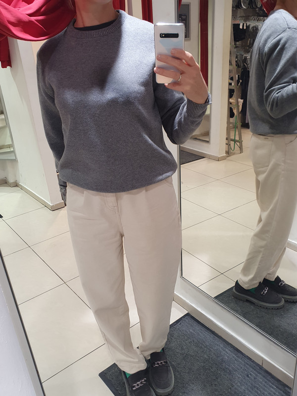 Примеряет брюки Остин и кофту Золла, все xs.