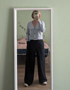 Этот образ очень светлый и легкий. У вас такая фигура прекрасная, что вам можно как раз со штанами играться с любыми. Мне бы хотелось ,чтобы эти брючки были чуть длиннее и пошире. Но и так хорошо)