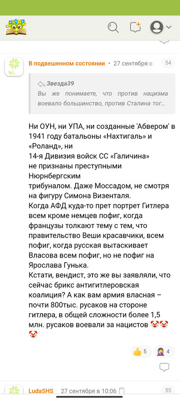 Некий Ярослав Хунка, представленный спикером как ветеран борьбы против русских в годы Второй мировой ***, удостоился в пятницу овации во время торжественного заседания парламента по случаю визита Владимира ***. Американское агентство Ассошиэйтед Пресс опубликовало фото с подписью "*** и (премьер Канады Джастин - ред.) Трюдо приветствуют присутствующего в парламенте Ярослава Хунка, который служил в Первой украинской дивизии в ходе Второй мировой ***".
