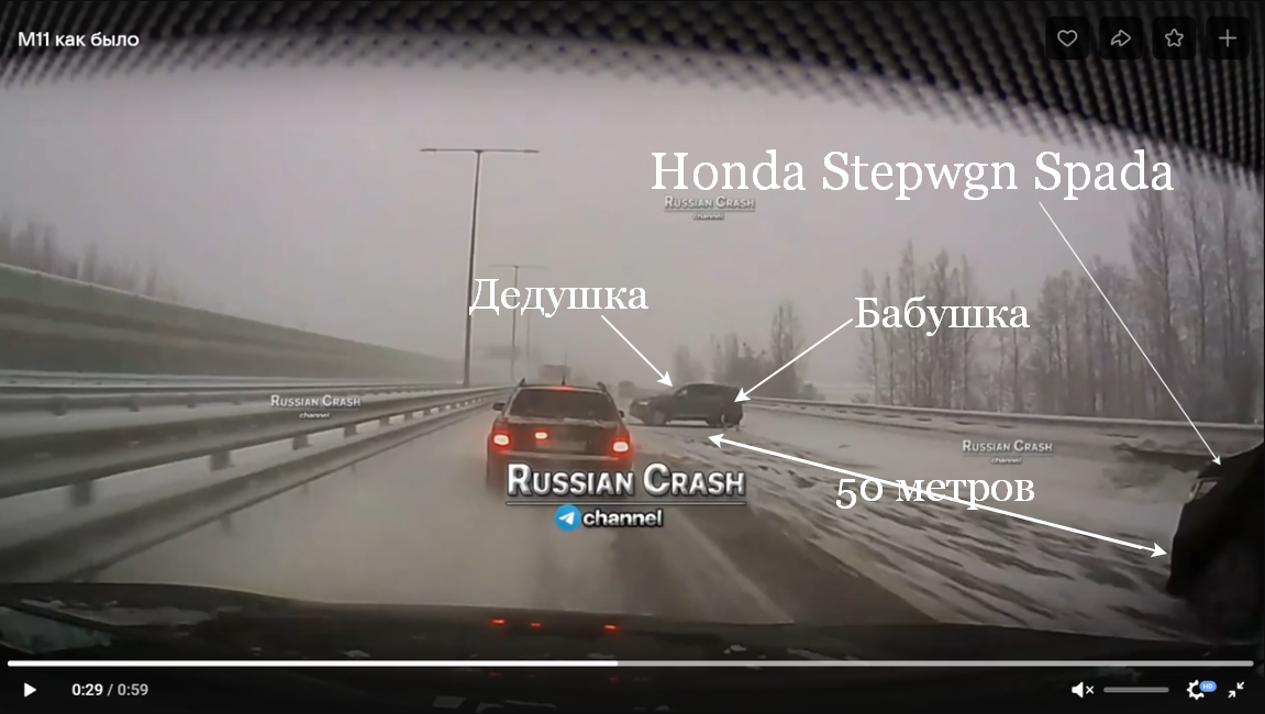 Черная Хонда в правом ряду с аварийками явно ехала с соблюдением всех правил и очень осторожно. Это же их?