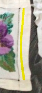 Дорожка состоит из трех одинаковых сегментов. Первый и второй соединены по схеме, третий присоединен по другому. ( Там где фиолетовый цветок ). Из за этого третий сегмент стоит дальше чем первые два, и уходит вниз. Кроме того, маки вышиты по- разному, как придется. Как будто делал или ребенок, или бабушка.