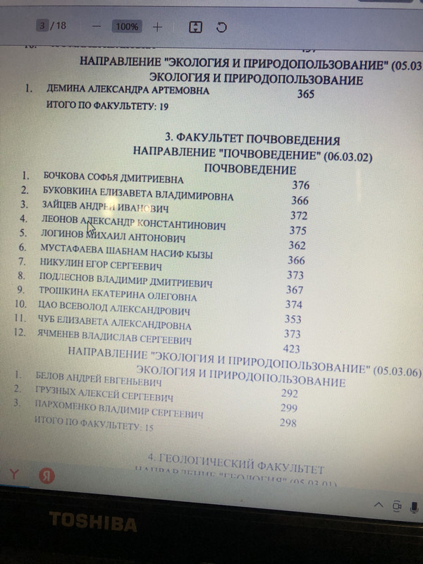 19 августа были опубликованы ранжированные списки поступающих в Московский университет, в том числе и на факультет почвоведения. 23 августа были подведены итоги первой волны зачисления. Приказ будет подписан и опубликован 24 августа.