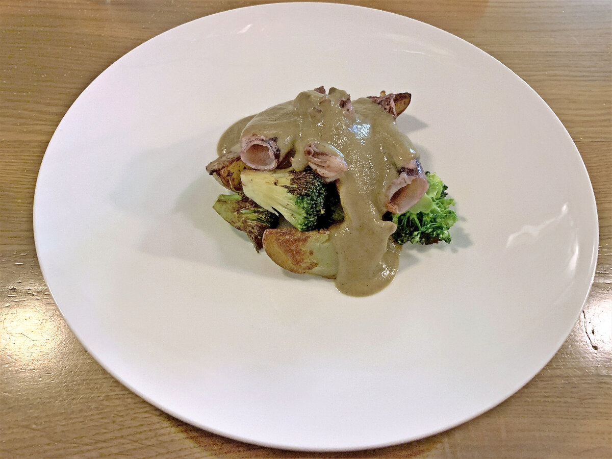 Если Вы ходите в такие места или знаете, кто ходит, расскажите пожалуйста, чем тарелка на картинке (ага, отварное брокколи и нечищеный кусочек кальмара за 950 рублей) лучше тарелки борща, котлеты и трех десертов, которые можно купить в столовой за эту сумму?