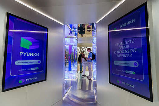 "Павильон интернет-энциклопедии "Рувики" открылся на выставке "Россия" в честь 30-летия Рунета. Пространство имеет форму куба с интерактивными экранами, динамичной подсветкой и объемными фигурами"