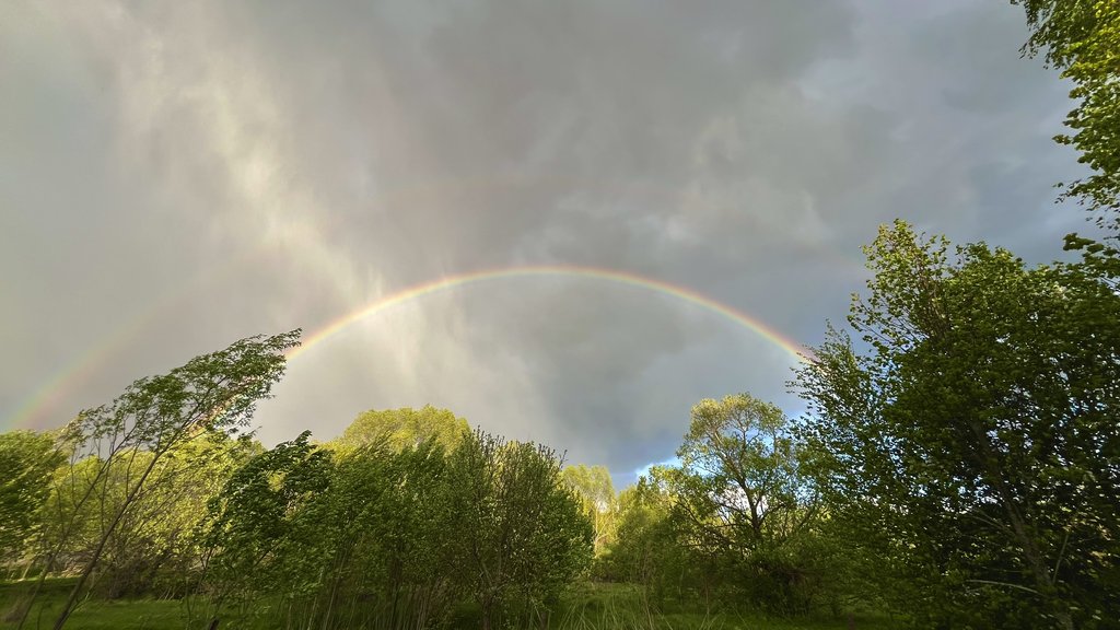 Да, это чуть позже было, около девяти вечера. А сбоку еще и радуга была на кусочке светлого неба.