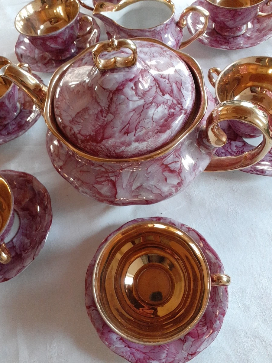 С советских времен у мамы остался только один сервиз, но японский) и кофейный, вроде, немецкий (это от отца ветерана, ему на 9 мая дарили)