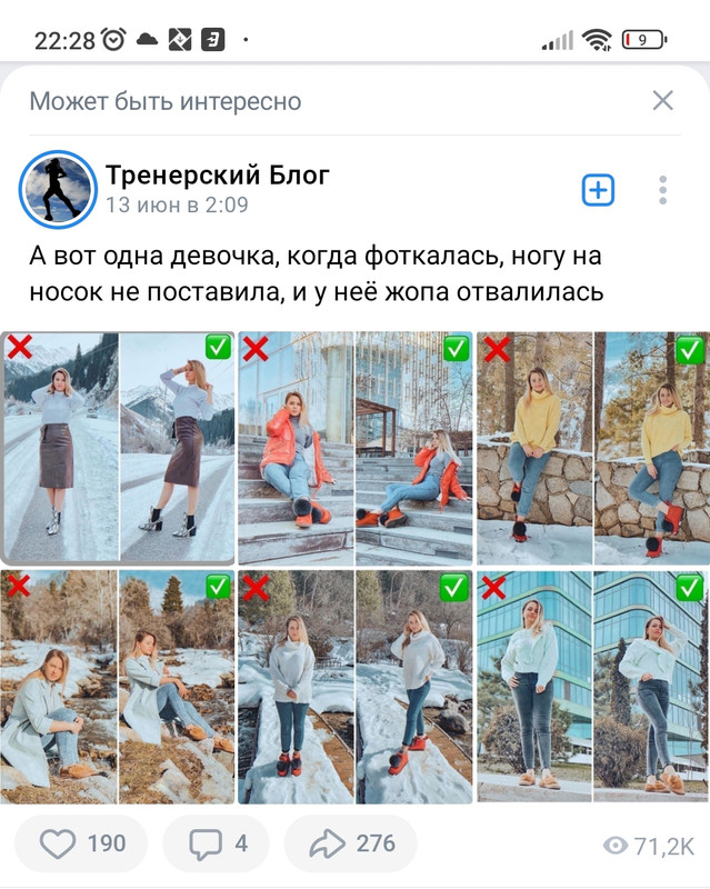 Если вы смотрите шмотки, то к чему ваши претензии к позам? Все позы на сайтах производителей, вот уж где на все вкусы. К позингу евы имеют опосредованное отношение, никто не собирается радовать вас нужными ВАМ ракурсами и профессиональной естественностью. Наука красивых поз вам на бабском сайте для чего? Здесь о шмотках. Большинство себя просто фотографирует в зеркале в коридоре, на выходе из квартиры. А Ольгу фотографируют дети. Есть кадр в резкости- уже хорошо.