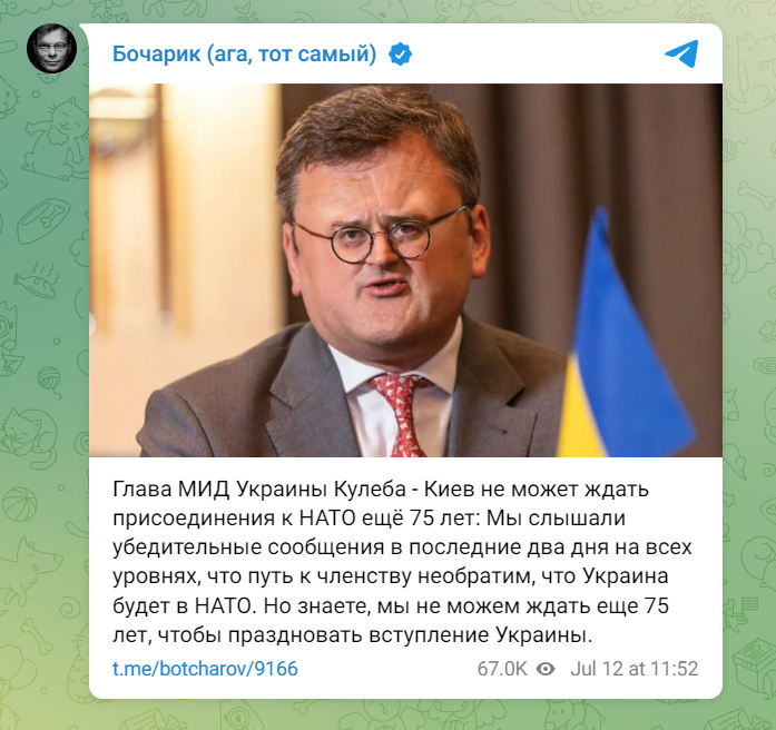 НАТО - не сторона конфликта на Украине, говорил он. Но почему-то поражение Украины - это поражение НАТО. Где логика?