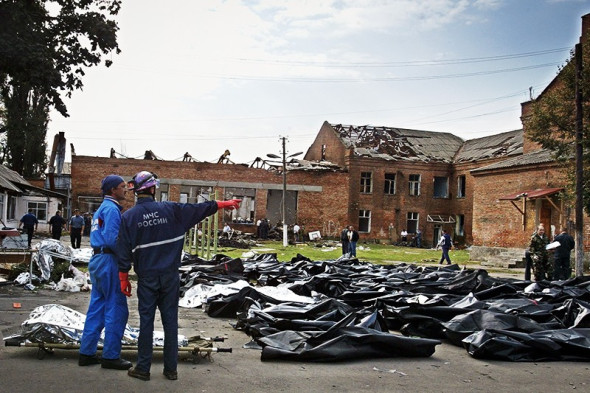 Террористы загнали в спортзал школы более тысячи заложников, в том числе детей. Людей насильно удерживали в школе три дня, не давая им воду и еду. Около полудня 3 сентября к зданию школы подъехал автомобиль с четырьмя сотрудниками МЧС, которые должны были забрать тела убитых террористами мужчин. В этот момент в школе раздались взрывы, после чего с обеих сторон началась беспорядочная стрельба, а из окон и образовавшегося в стене спортзала пролома стали выпрыгивать дети и женщины. Жертвами трагедии стали 334 человека, в том числе 318 заложников, из которых 186 - дети. Погибли также десять сотрудников Центра специального назначения ФСБ России, двое сотрудников МЧС и 15 милиционеров. Ранены были 810 заложников, сотрудников спецназа ФСБ, милиции и военнослужащих.