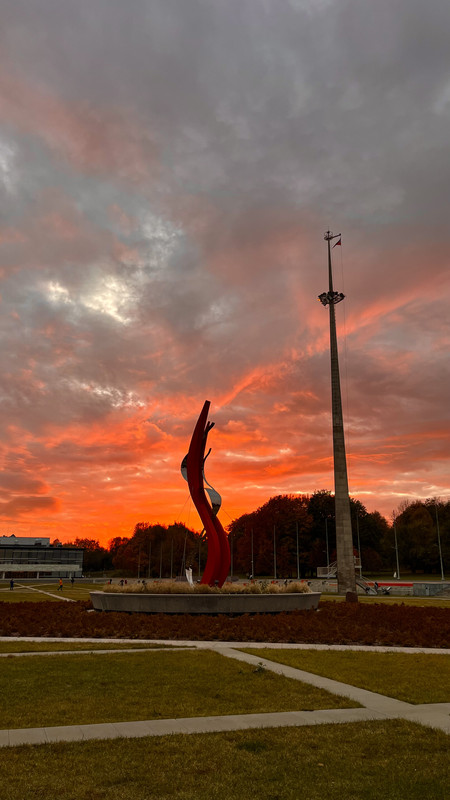 Я часто бываю около Дворца пионеров. Не обратила внимания на эту новую скульптуру. Зайду:))) Красиво вышло на фоне загоряющегося неба.