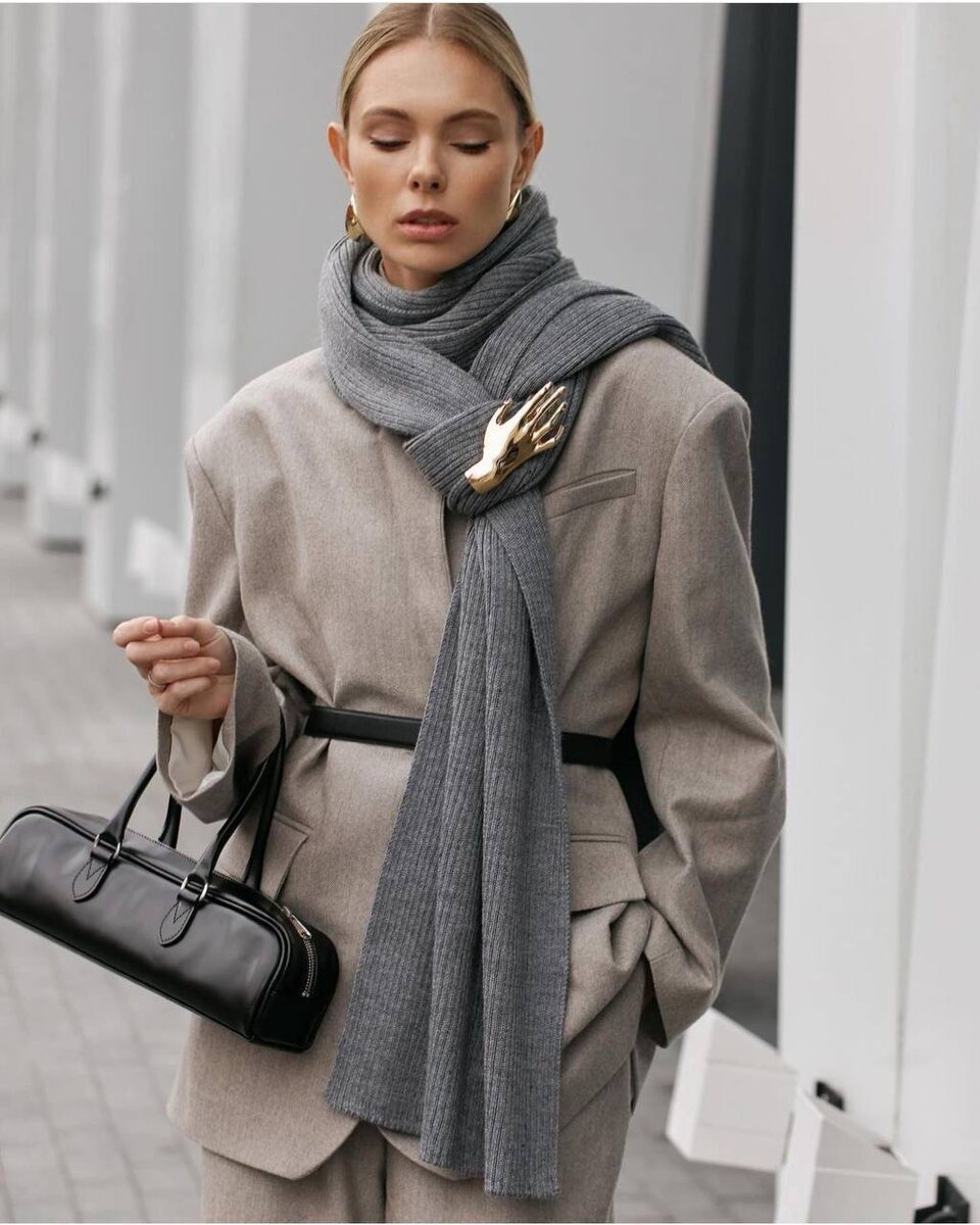 я не знаю, какой образ у вас вырисовывается при словах - палантин и брошь)