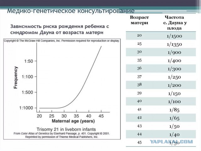 Нет сведёт статистики. Но когда смотрела, даунов родили 18-22г, а не 40 плюс, вот такое соотношение и риски.
