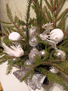 Елка настольная, зеленая, примерно метр. Как раз пяти штук и хватит, может, пару серебряных шариков.
