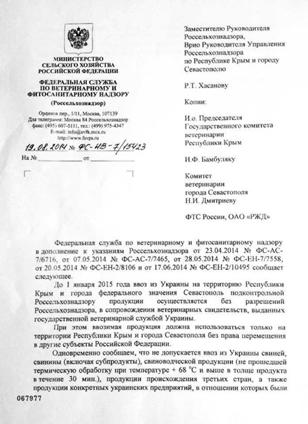 Напомним, что в начале августа президент России Владимир Путин подписал указ "О применении отдельных специальных экономических мер в целях обеспечения безопасности Российской Федерации". Согласно этому документу, вступившему в силу с момента подписания, запрещается или ограничивается сроком на один год ввоз сельхозпродукции, сырья и продовольствия из стран, присоединившихся к санкциям против России.