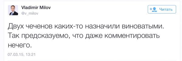 Это первый комментарий чеченского лидера после того, как появилась информация о задержании подозреваемых в убийстве Немцова. Один из них, Заур Дадаев, служил в батальоне «Север» МВД Чечни.