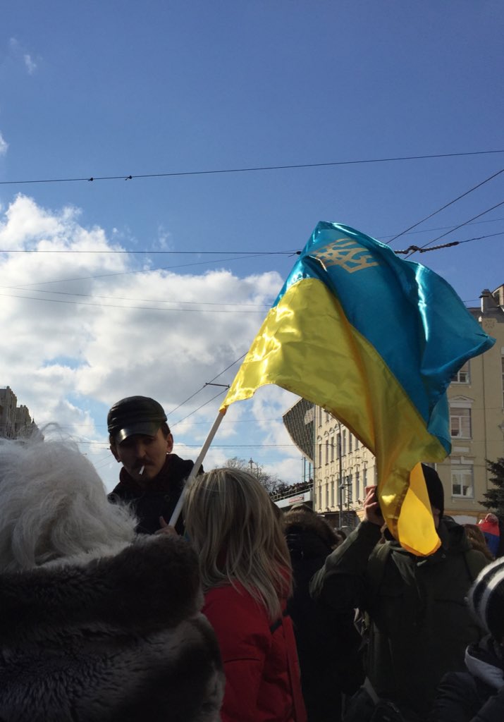 Товарищ с флагом Украины ходит по Пушкинской: всем это безразлично, кроме фотографов