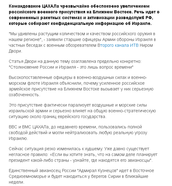 Возможно, сделанная «утечка» является одновременно проверкой реакции на возможное событие такого рода, а также почти открытым предупреждением для российского штаба операции ВКС о наличии такого американского штаба, ну и в последнюю очередь — предупреждением всем «аллепским» израильтянам, чтобы не надеялись выбраться живыми, если с американцами и другими союзниками что-то вдруг случится.