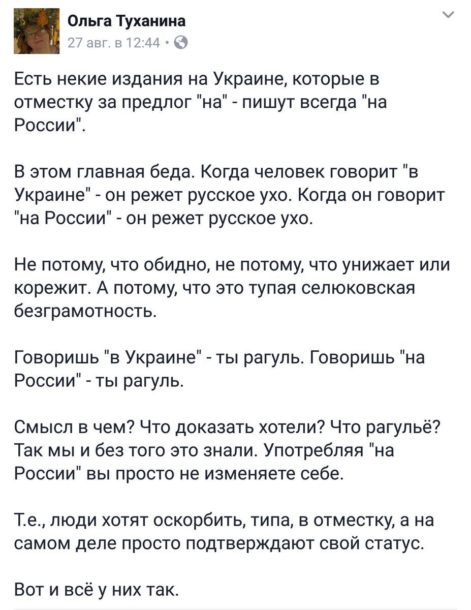 Вот это мещанское простодушие на уровне гоголевского "что же ты стоишь, хлеба просишь, ведь я же тебя не бью" убивает. Русские таких людей презирают. И кстати русские всегда думали что "Иваны Никифоровичи" и "Держиморды" это обобщённые карикатуры, "социальные типы". А Гоголь, получается, лишь вполне реалистично описывал родную миргородскую глубинку. За что и получил от "Иванов Никифорович" через 150 лет сапогом в морду.