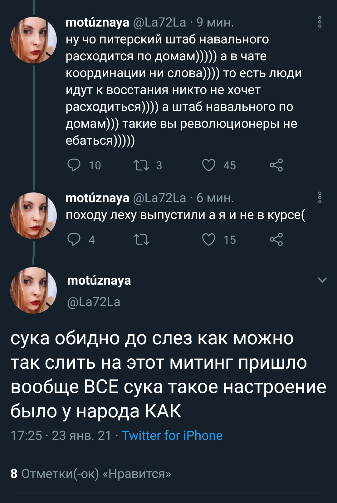 Ну какое нам дело до российского жулика Навального,до Питера, до их протестов? Лично мне по барабану что там у них и как. Пусть хоть перегрызутся все.