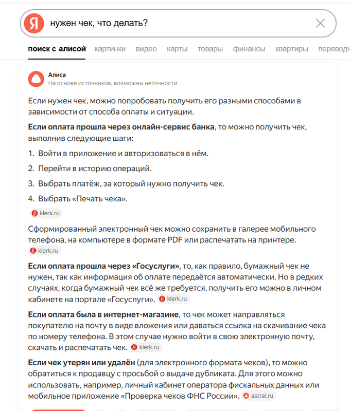 Найти чек, если они его выставили, элементарно - там куча поисков по дате, по сумме, по плательщику, по чему угодно.