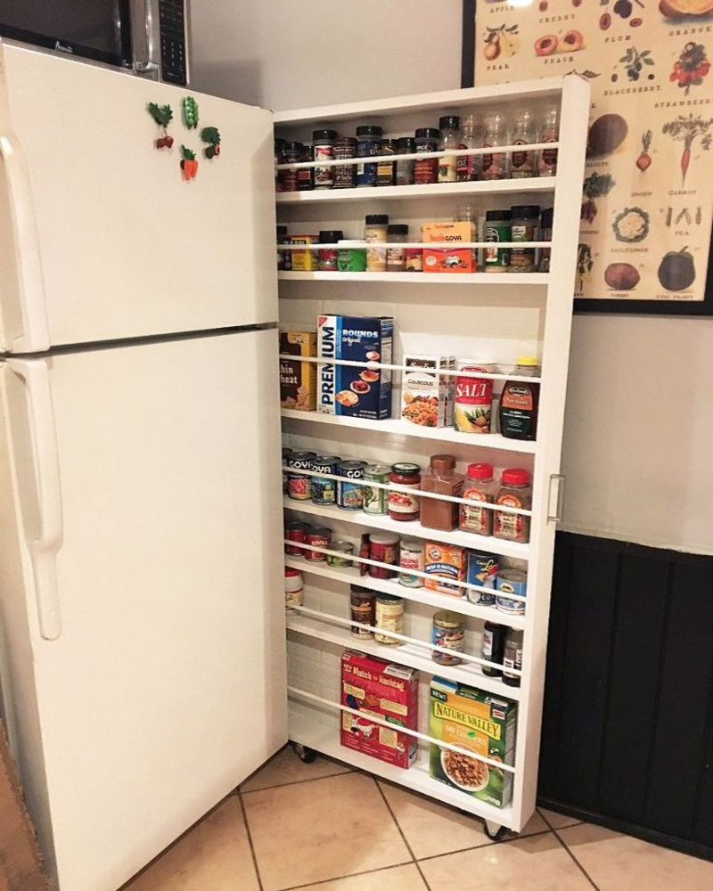 Почему глупость то? Мне тоже такое неудобно, у меня целая полка всяких чаев, кофе, вторая такая же с приправами, коробками пакетами с макаронами, крупами и тд. Мне было бы дико неудобно каждый раз все это брать из нижних ящиков.
