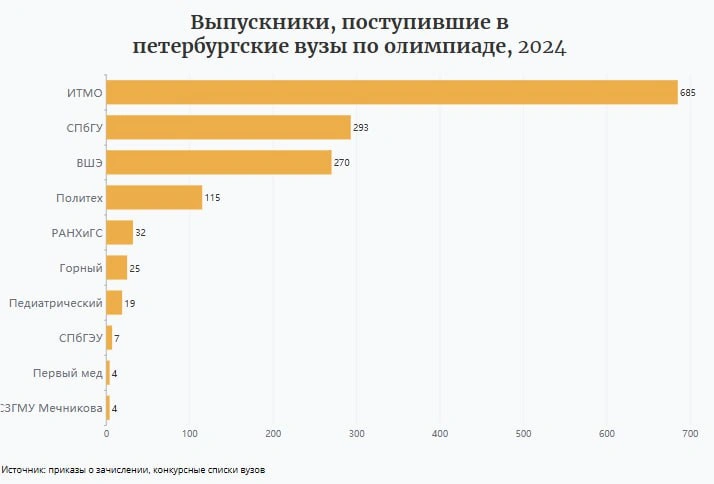 По БВИ (без вступительных экзаменов) в десятку крупных вузов Петербурга поступили почти полторы тысячи человек, причем почти половина из них — в ИТМО. Как итог — в ИТМО, СПбГУ и петербургском кампусе ВШЭ оказались специальности, где не осталось бюджета совсем.