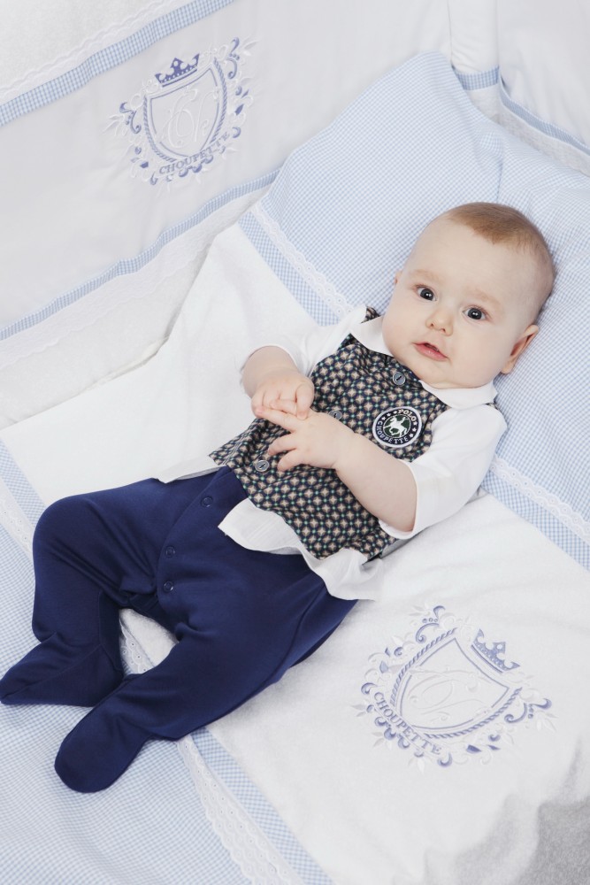это всё вместе - комбинезон, декорированный вшитой жилеткой и рубашкой, и мягкий хлопковый чепчик.