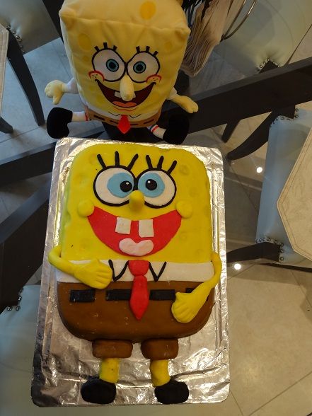 Мы сегодня с младшим делали шокодано-вишневый Спонж Боб торт для старшего пока он спал - у него завтра день рождения.