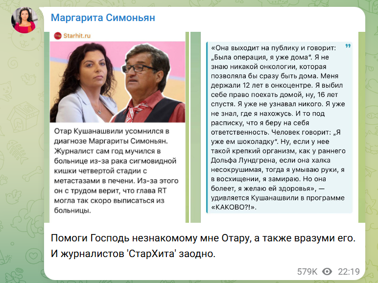 А Симоньян говорила, что у нее рак?