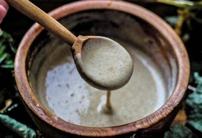 Я от бронхита варю овёс с шелухой в большом кол-ве молока очень долго, потом ещё переливаю в термос, получается тягучая, цветом топлёного молока жидкость. Именно киселеобразная. Вкусно и очень помогает от бронхита.