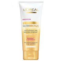 Была такая супер вещь, как постепенный загар у Лореаль. Вот он http://4.bp.blogspot.com/_Ay13j1W5PvY/SH9pEH8-GjI/AAAAAAAACMU/XejEIhMOZ00/s320/nutribronze.jpg