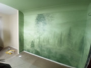 Фрески это то что 30 лет назад называли фотообои что ли? Для детей мрачновато и яйцо подвешенное перед стеклом и обезьяны на проводах тоже не для детской. Совершенно не чайлд прув комната.