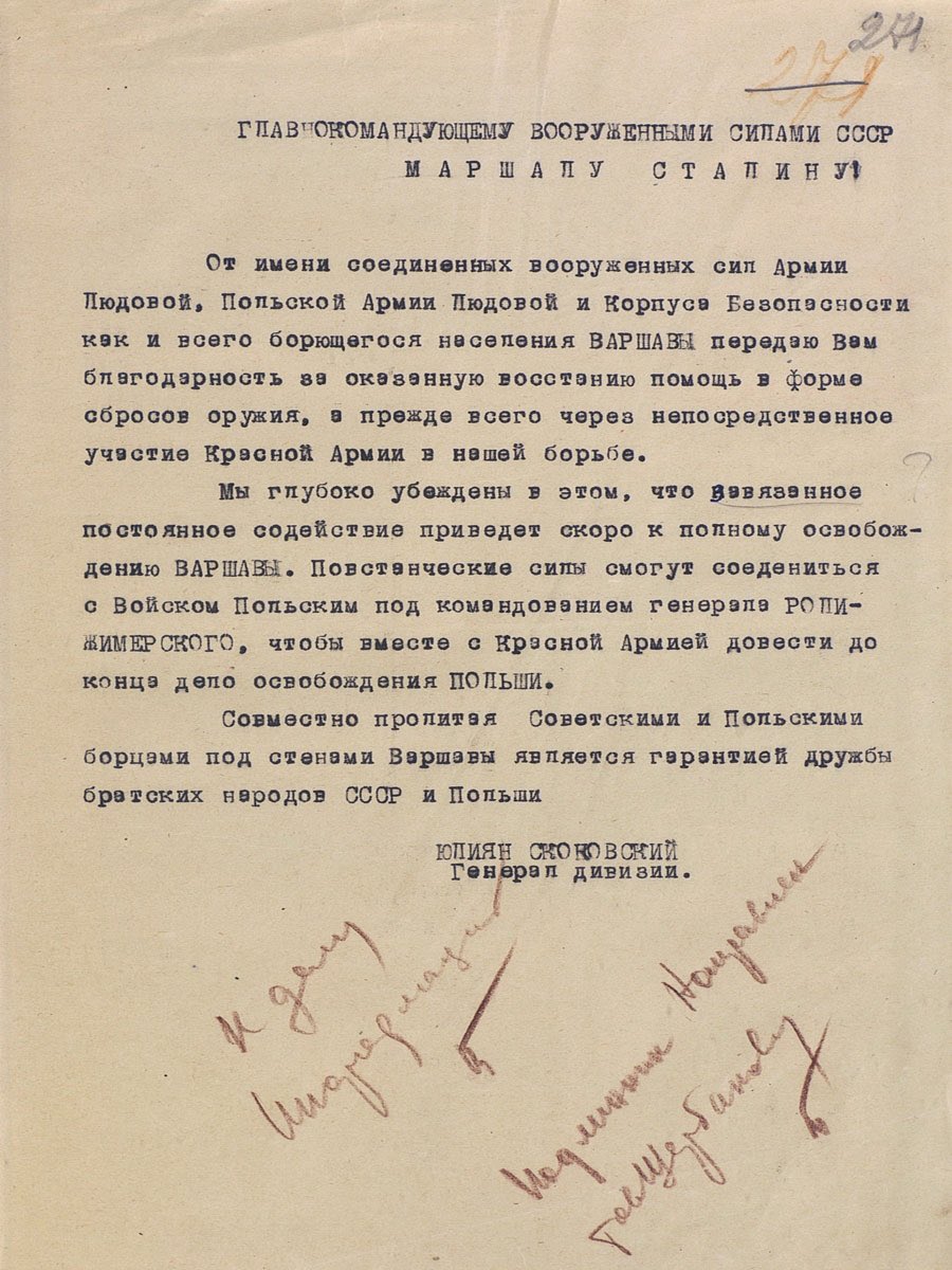 К 75-летию освобождения Варшавы советскими войсками Минобороны России представило ряд архивных исторических документов.