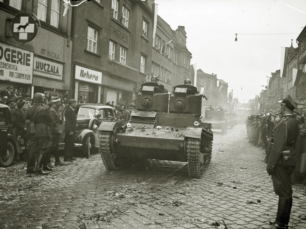 Танки 7TP польской армии вступают в г. Чески-Тешин, Чехословакия