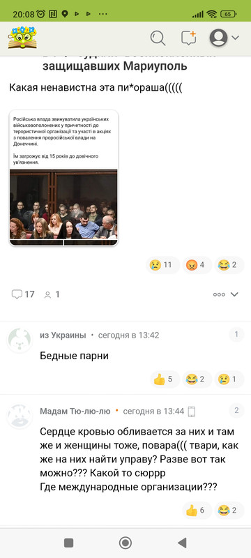 ..чтобы прочитали, что им здесь напишут о наших пленных из Азовстали, которых русские ублюдки замучили в плену до ужасного состояния, и о которых уроды из ева.ру и других помоек пишут 'какие мерзкие рожи"... Ребята обессиленные, худые