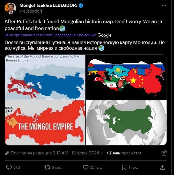 Бывший президент Монголии послушал интервью Путина и выкатил историческую карту своей страны.