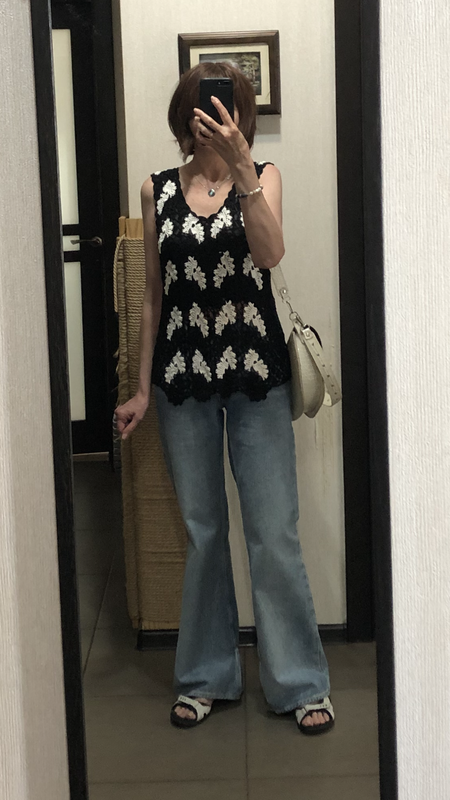 Снова я со своей писаной тобой:). Продолжение примерки. Такой на вечер вариант. Верх тогда будет кожанка.