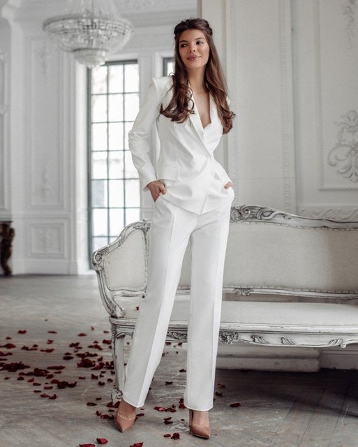 Когда читала ваш пост, сразу вспомнился наряд невесты , которую я видела, когда мы с будущим (тогда еще ) мужем подавали заявление в ЗАГС )) Она меня очень впечатлила - на ней был белоснежный брючный костюм (брюки палаццо + жакет), и шляпа.