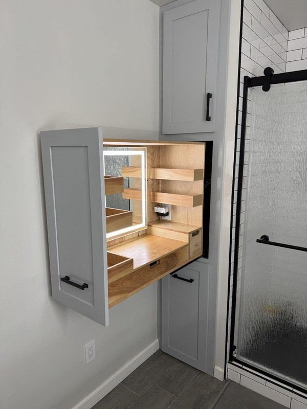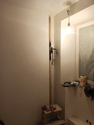 У нас часть ванной комнаты первого этажа в подлестничном пространстве. И вот сто лет в доме живём, а только довели до ума абсолютно копеешным решением и парой мужских рук.